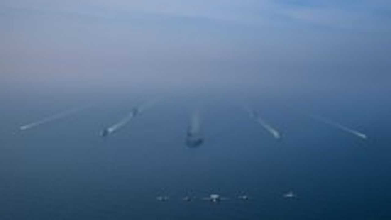 "Abraham Lincoln Uçak Gemisi Taarruz Grubu, iki askeri ikmal gemisi ve iki ABD Sahil Güvenlik gemisi eşliğinde bugün Arap Denizi'nde birlikte seyrederken, 9. Uçak Gemisi Hava Kanadı'na ait uçaklar da üzerlerinden uçtu. Güçle Barış!"