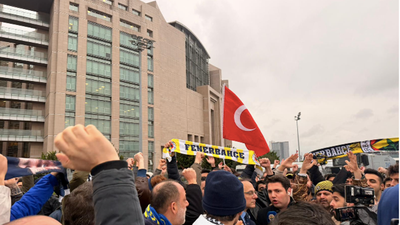 Fenerbahçe taraftarları ise adliye çevresinde toplanmaya başladı. Taraftarlar, Saran için destek sloganları atıyorlar.