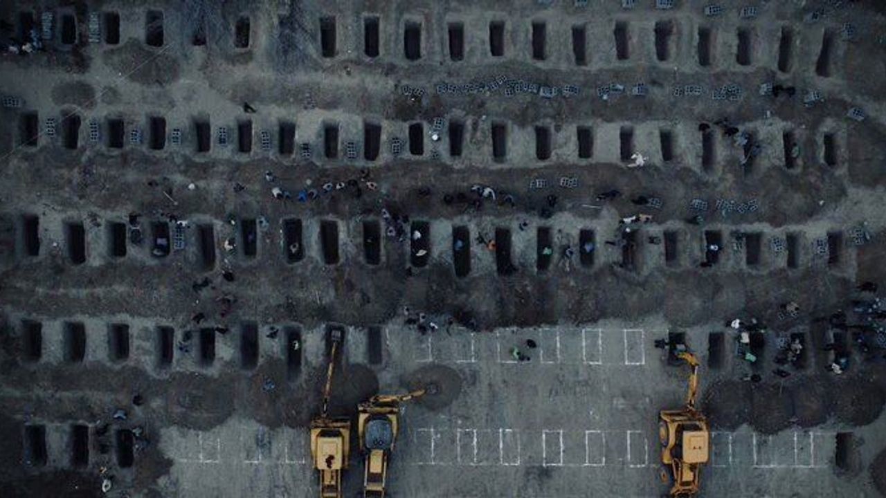 Çocuklar dahil ölenlerin tabutları araçlarla sokaklarda ilerledi.
