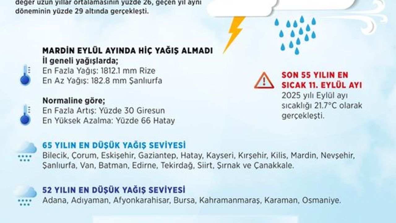 2025 yılı Eylül ayı sıcaklığı ise 21.7°C ile son 55 yılın en sıcak 11. Eylül ayı olarak kayıtlara geçti."