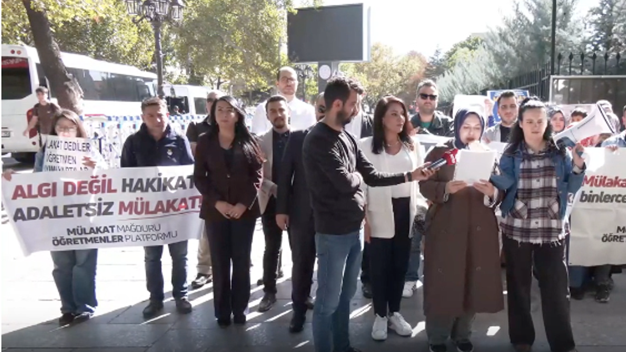 "Mülakat değerlendirmelerinde mağduriyet yaşadıkları" gerekçesiyle Türkiye’nin birçok ilinden Ankara'ya gelerek adalet ve hak arayışını sürdüren öğretmen adaylarının, MEB önündeki nöbetleri 335 gündür devam ediyor. Milli Eğitim Bakanlığı önünde bir araya gelen öğretmenler, basın açıklaması yaptı.