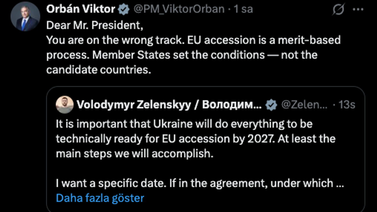 Son olarak Ukrayna Cumhurbaşkanı Zelenskiy'in, X hesabından yaptığı AB üyelik paylaşımını alıntılayarak, yanıt verdi.