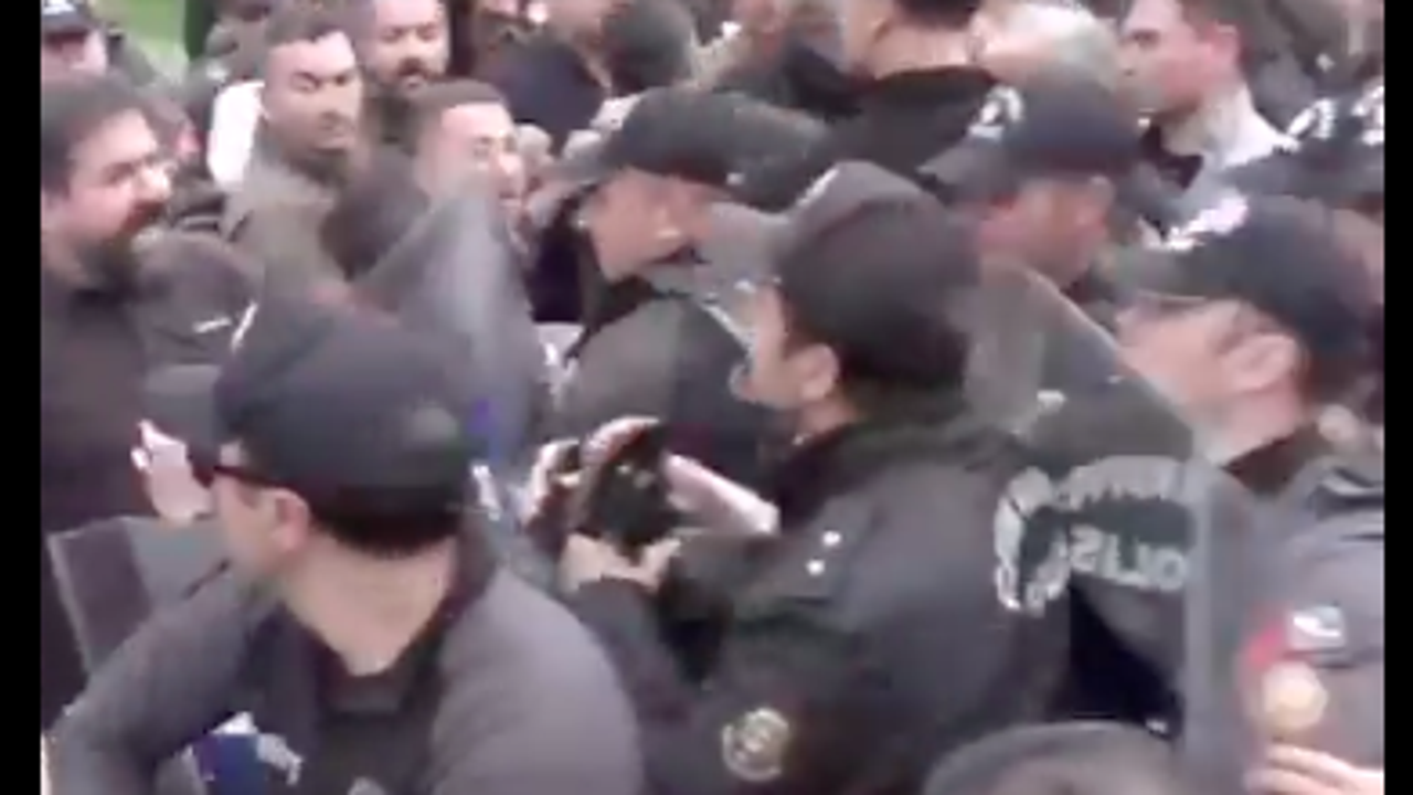 Milletvekillerinin de destek olduğu işçiler, Bakanlığa yürümek için polis barikatlarına yüklendi.